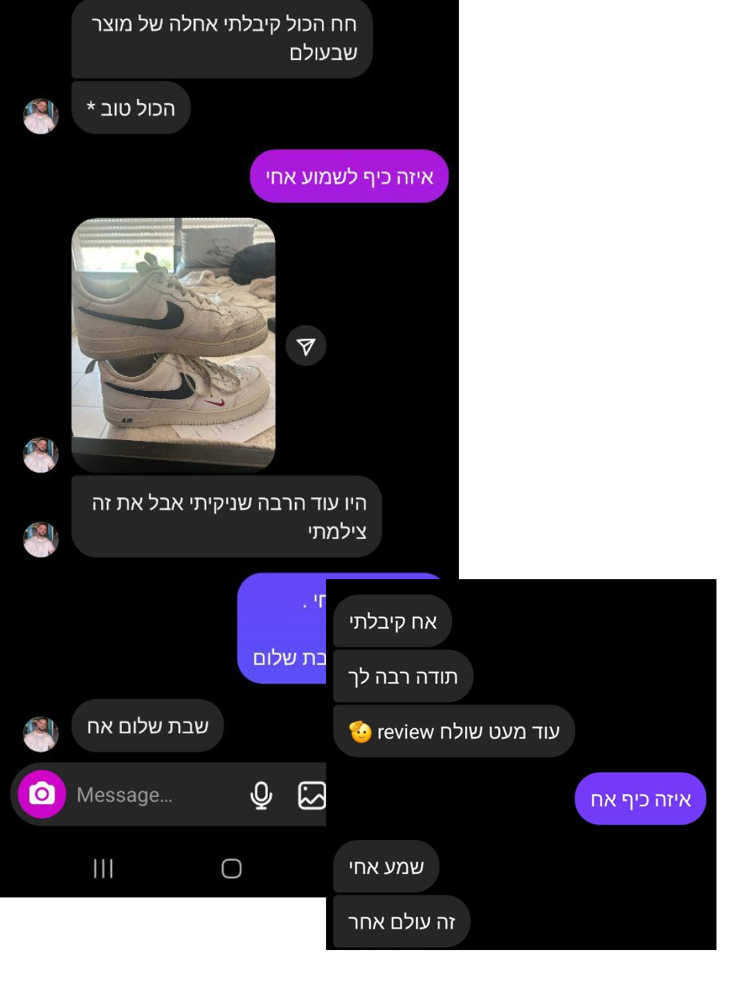 אנחנו בטוחים באיכות המוצרים שלנו, ואם יש בעיה – נחליף בלי שאלות. Red Loafer זה לא רק מוצר, זה שירות. יש לכם שאלה על כתמים, חומרים או איך לנקות נכון את הנעליים? פשוט כתבו לנו – נשמח לייעץ ולעזור.