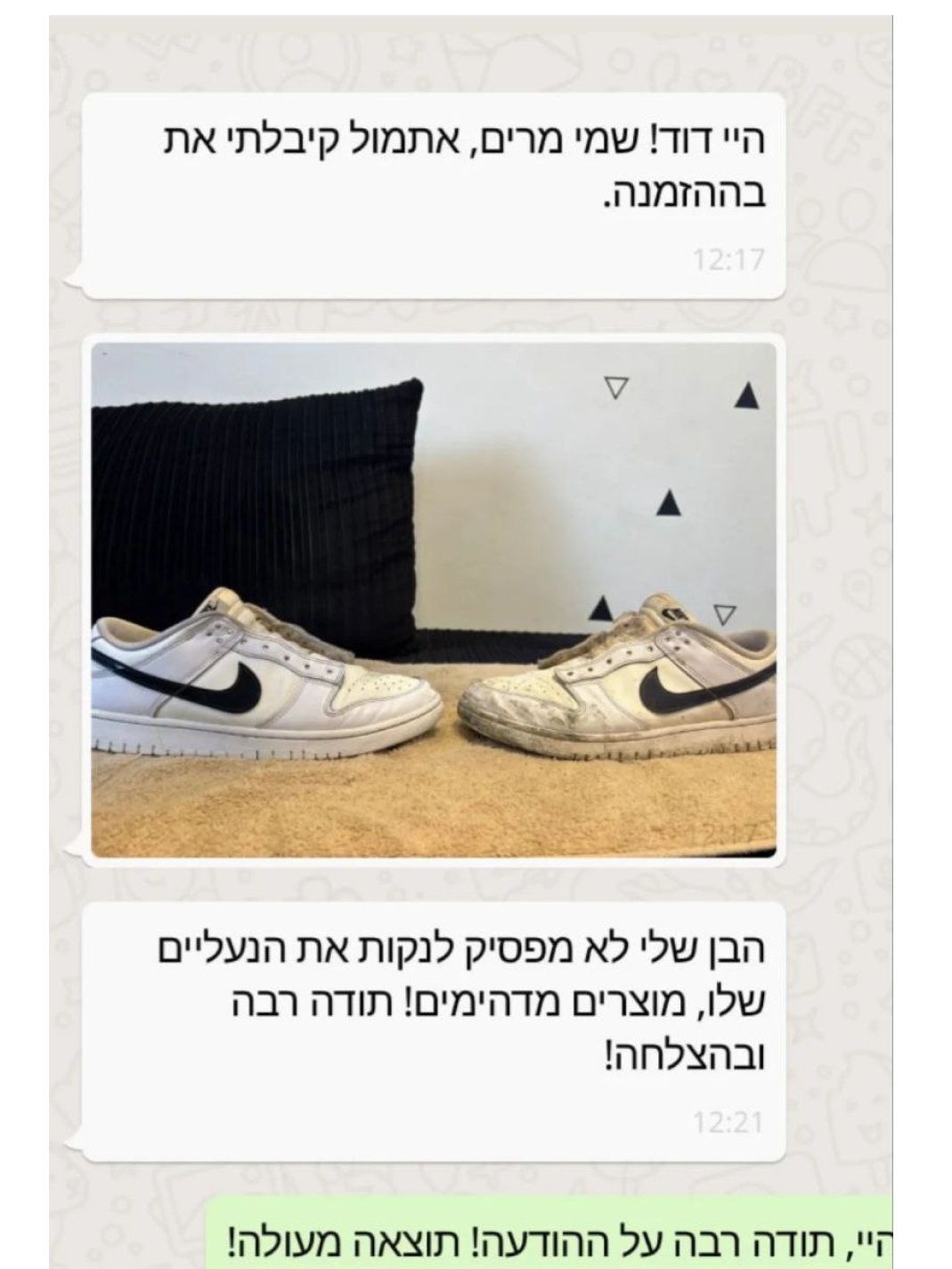 המותג נולד מתוך אהבה אמיתית לנעליים. חיפשתי פתרונות יעילים, עדינים ומדויקים לניקוי ושימור הנעליים שלי, וכך הפכתי את התשוקה למציאות.תוך כדי מילואים הקמתי את Red Loafer המותג הראשון מסוגו שמיוצר בישראל כדי להעניק את כל הפתרונות לטיפול ושימור הנעליים האהובות עליך – בקלות, ביעילות.